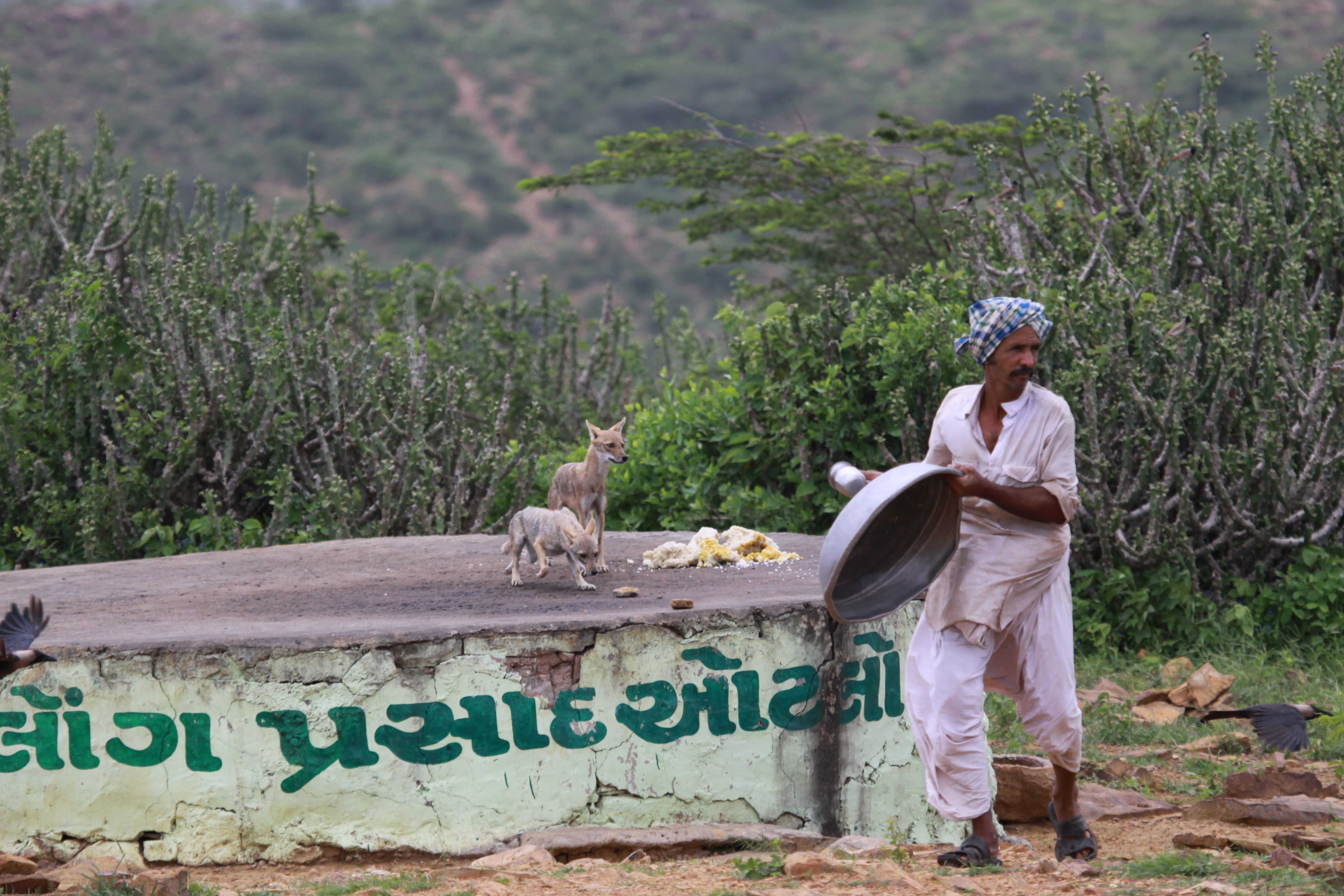 This centuries-old tradition has had a positive impact on the conservation of wildlife: The highest density of jackals in the world can be found in Kaala Dungar. In around 20 square kms of scrub jungle, you have as many as 150 jackals. Of these, around 20 to 30 come to partake of the vegetarian offering. The others must be strictly non-vegetarian!
