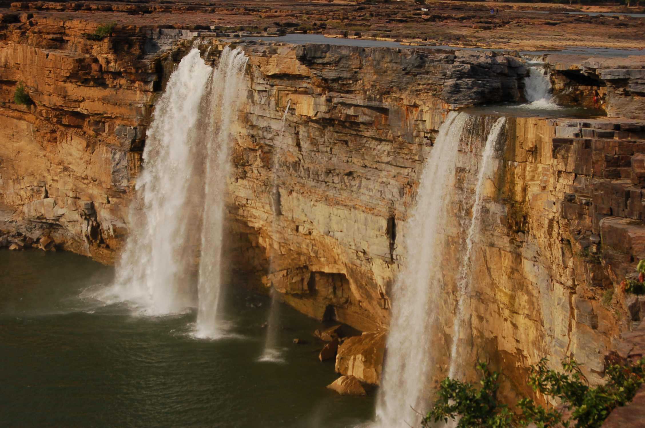 The nearby Chitrakoot falls is a study in contrast. Here the river Indravati takes a massive 100-foot free fall, instead of adopting a step-by-step approach. Falling at three different spots along a horse-shoe-shaped gorge, it's two-third the size of Niagra, yet almost as breathtaking.