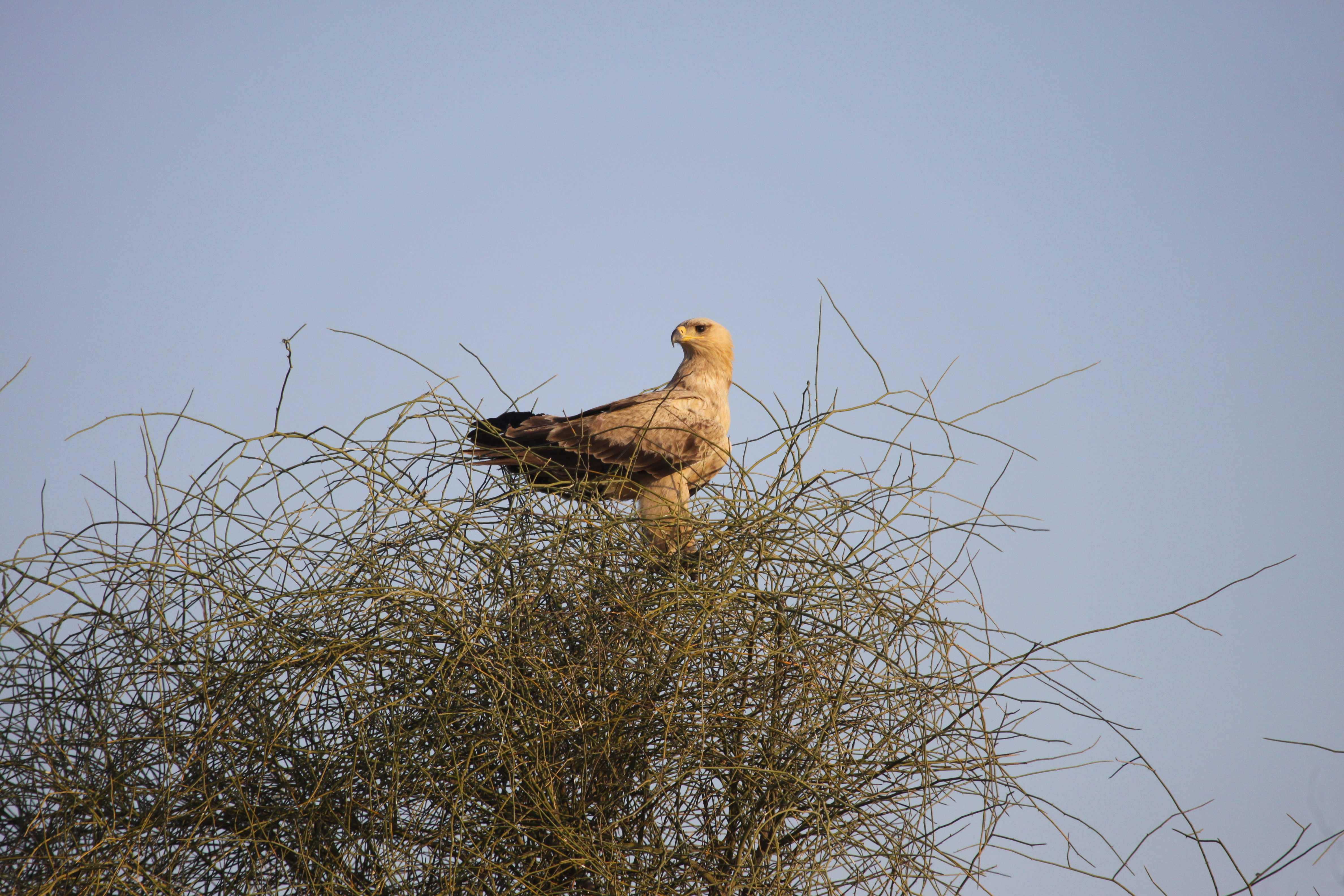On the drive to the main gate, we spotted the Imperial Eagle and the equally royal Egyptian Vulture. At the gate, we were told by the excited forest guard Dharamdas that he had spotted a small group of the highly endangered grassland bird, the great Indian bustard. But after a kilometre-long ride through the open grassland when we reached the spot we discovered that the elusive bustards had once again eluded us. The first time I set out on such a journey was in a Bishnoi village in Rajasthan called Khari. There again, I had missed them by a feather.